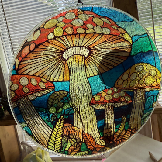 Mushroom Window Decor Glass Colorful